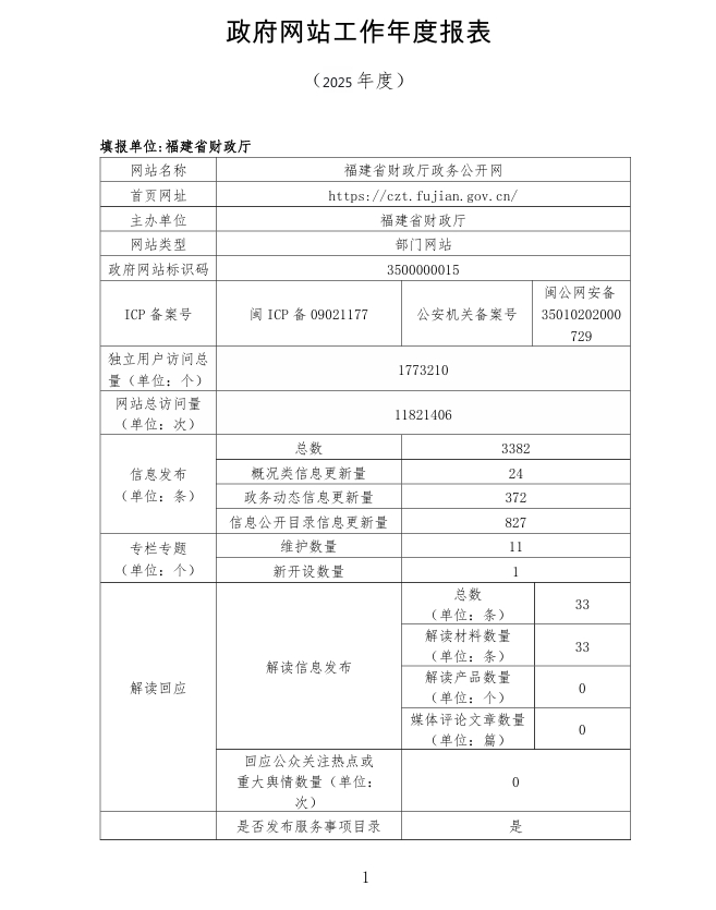 2025年度福建省财政厅政府网站工作年度报表