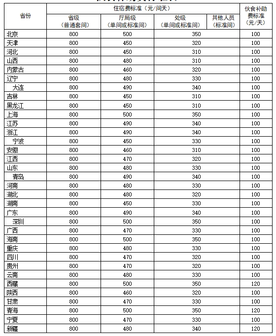 省外出差按照财政部发布的相关地区出差伙食补助费标准执行(见附件2)。