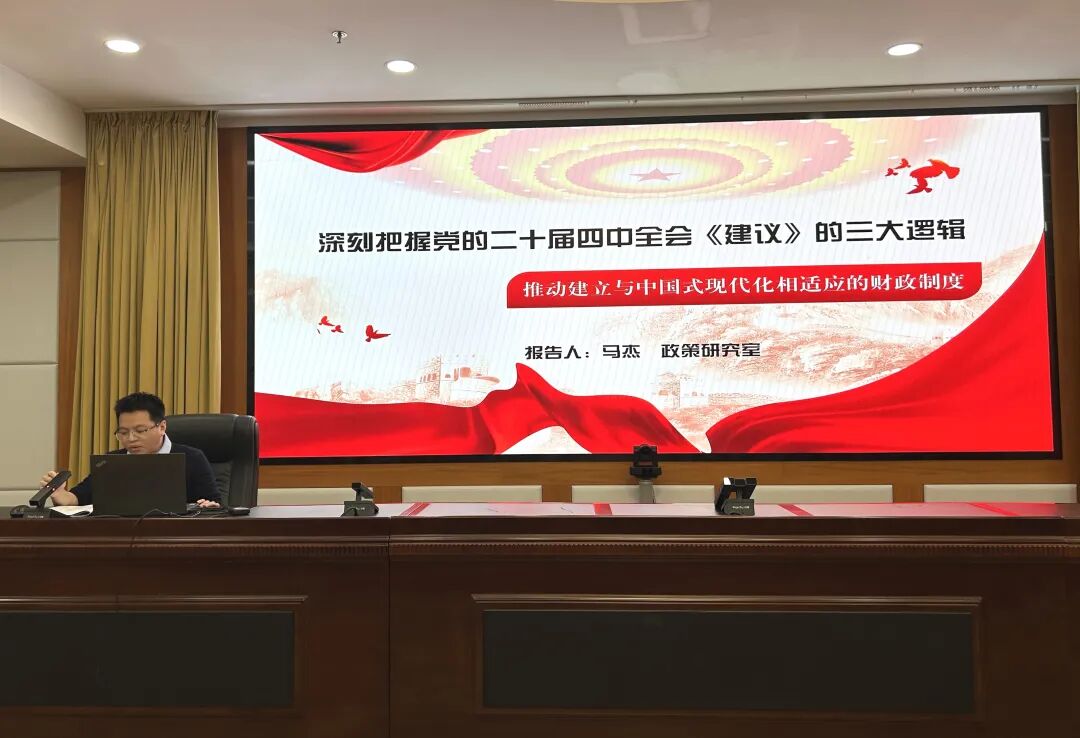 厅政研室年轻干部马杰同志以“深刻把握党的二十届四中全会《建议》的三大逻辑 推动建立与中国式现代化相适应的财政制度”为主题作专题辅导,从历史、理论、实践三大逻辑层面展开深度分享,系统解读全会要求与财政体制改革方向,帮助大家把握全会精神与财政工作的内在联系。
