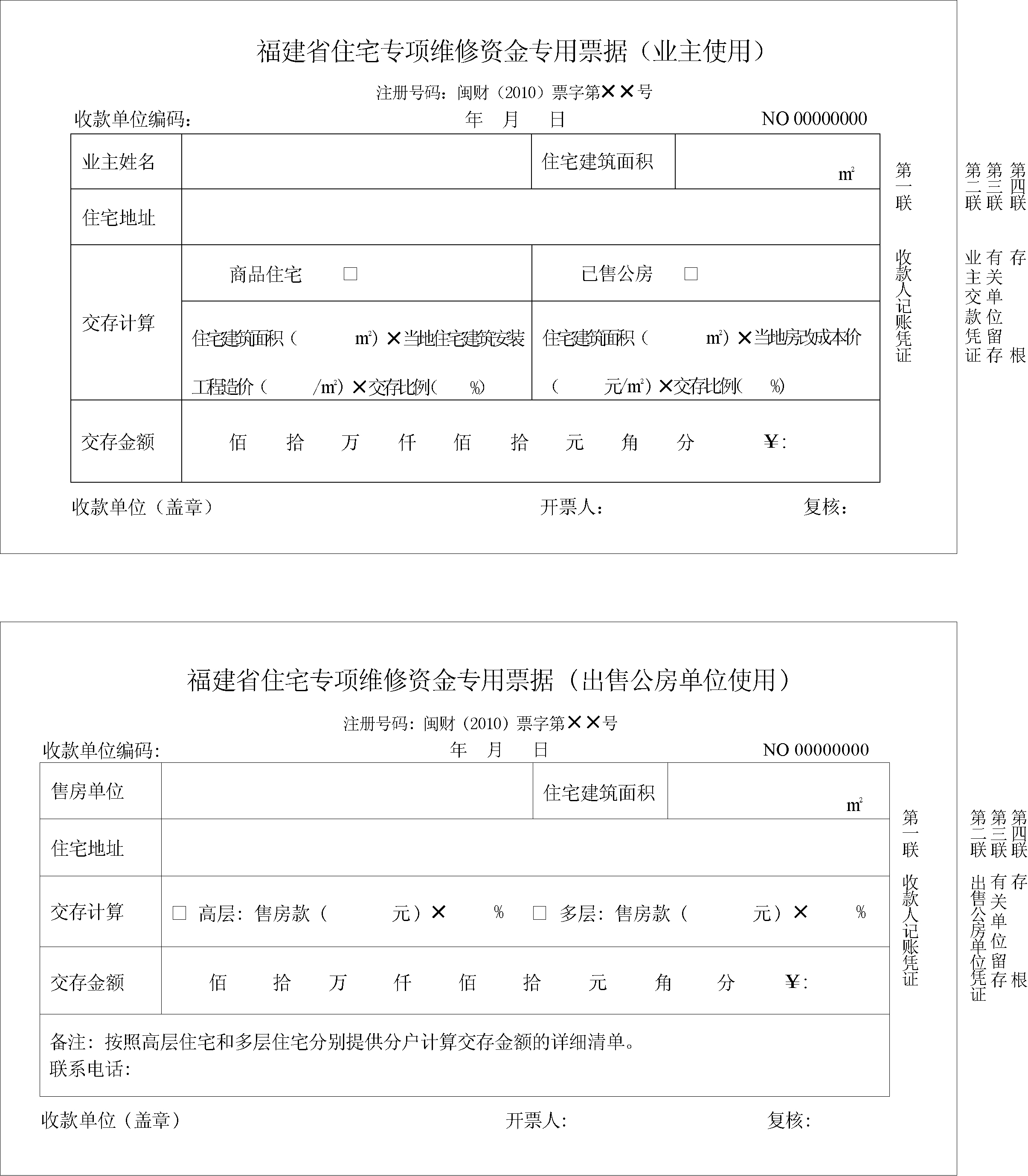 附件:1.《福建省住宅专项维修资金专用票据》(出售公房单位使用) 式样